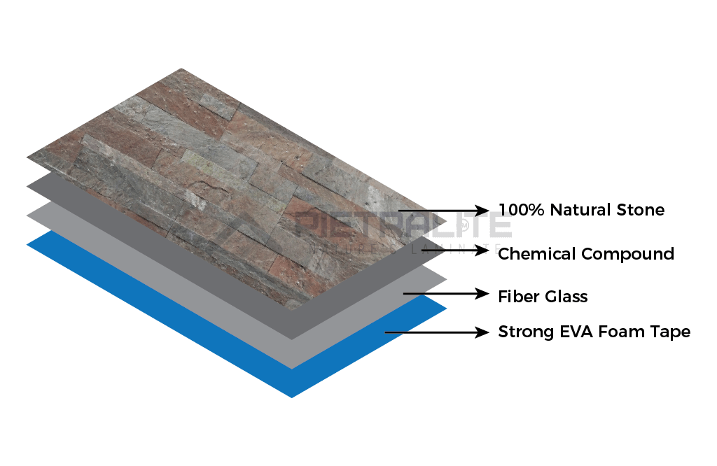Materials 100% natural stone, fiberglass, resin, double-sided adhesive
