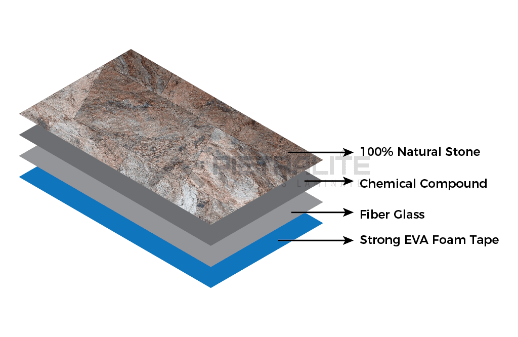 Materials 100% natural stone, fiberglass, resin, double-sided adhesive