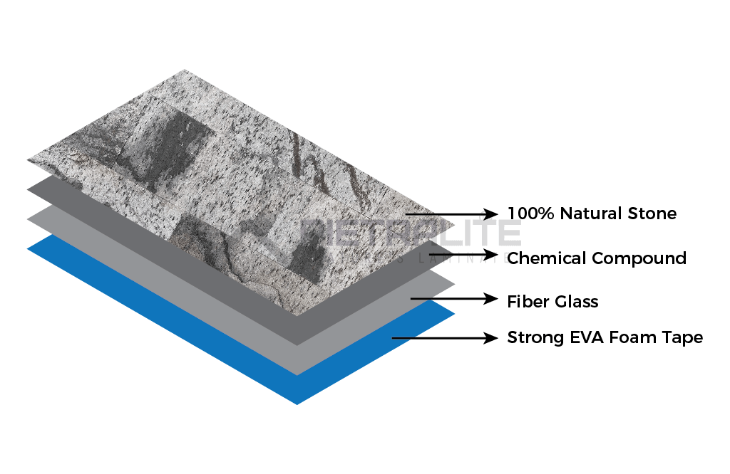 | Materials | 100% natural stone, fiberglass, resin, double-sided adhesive |